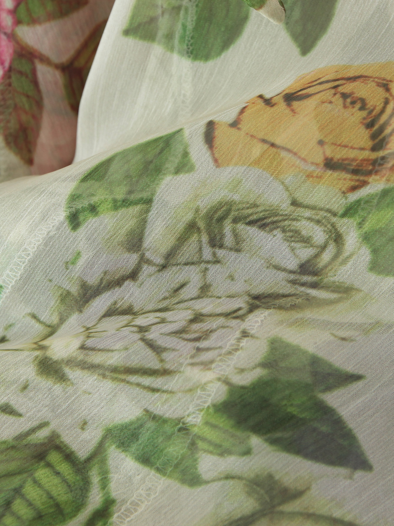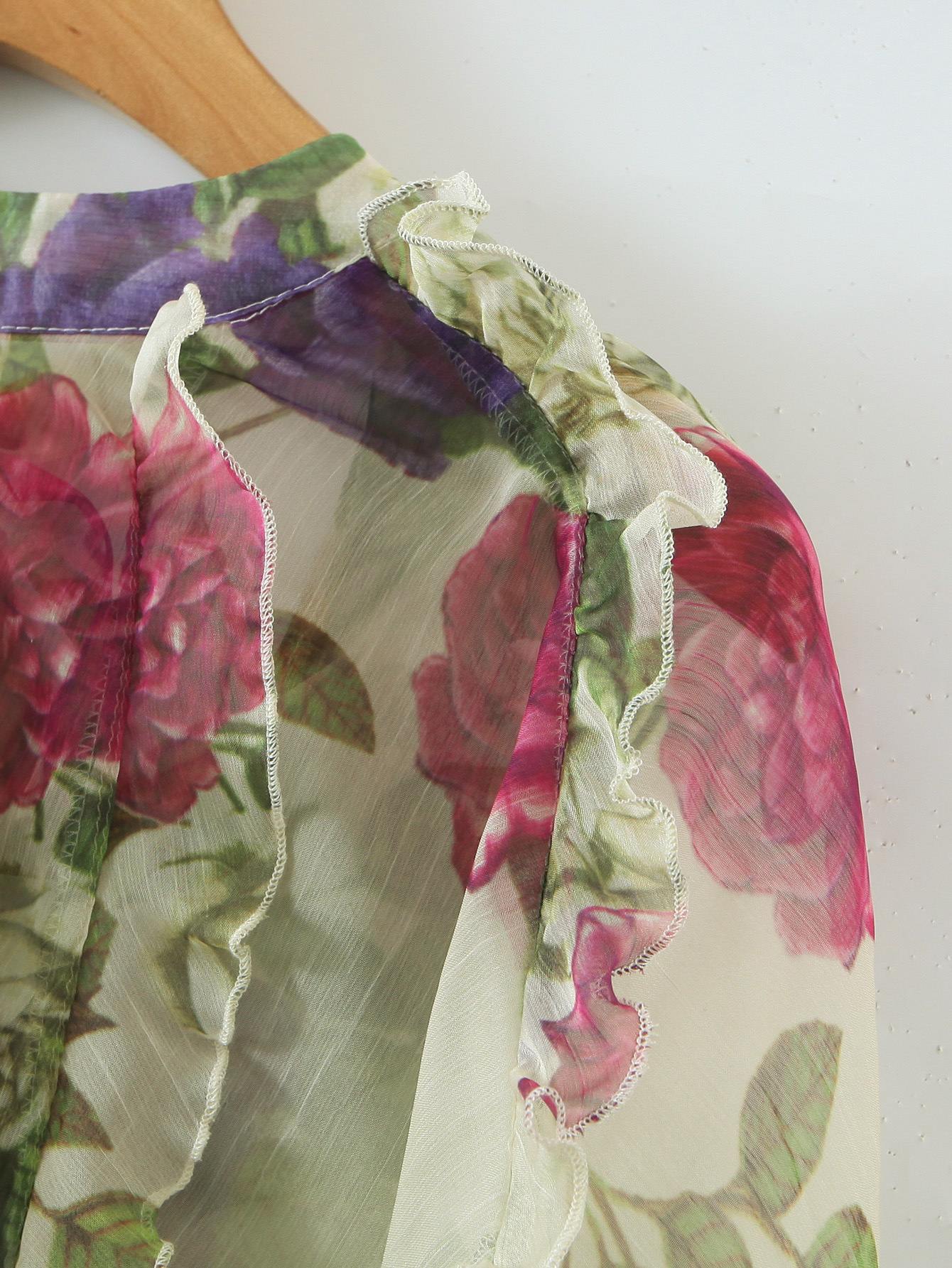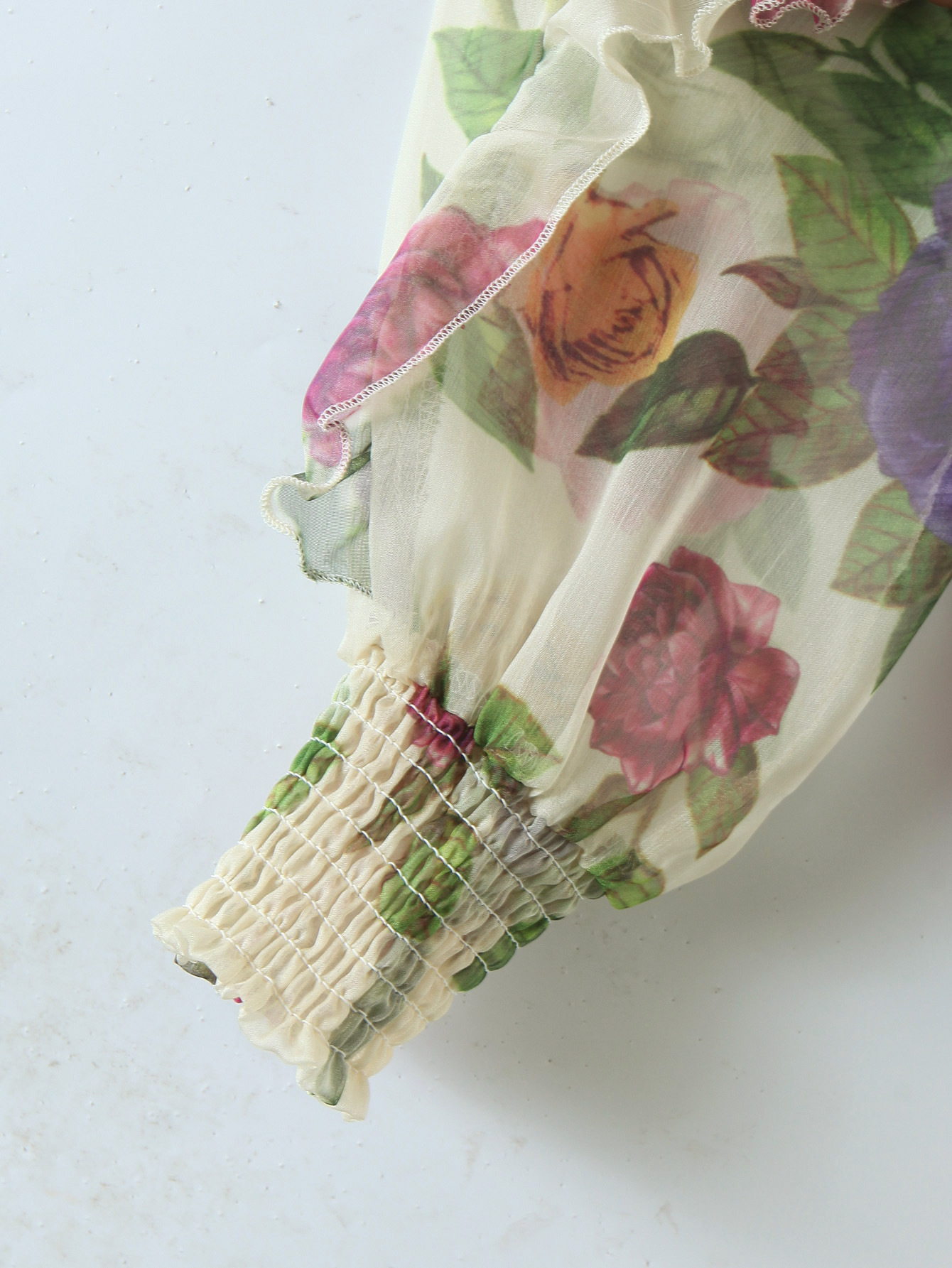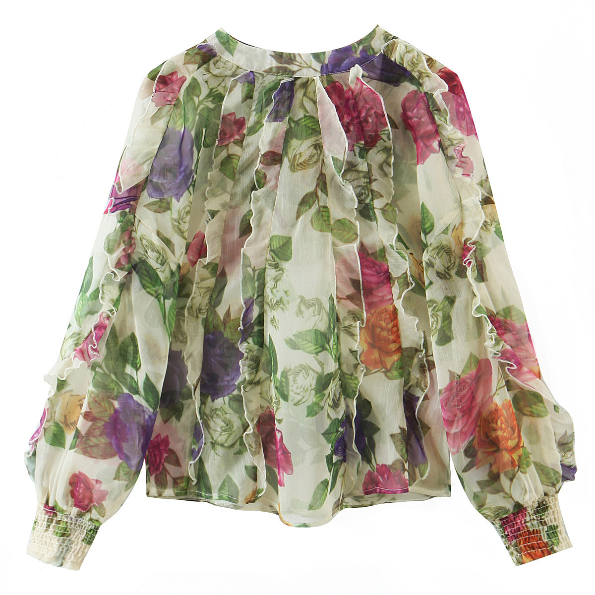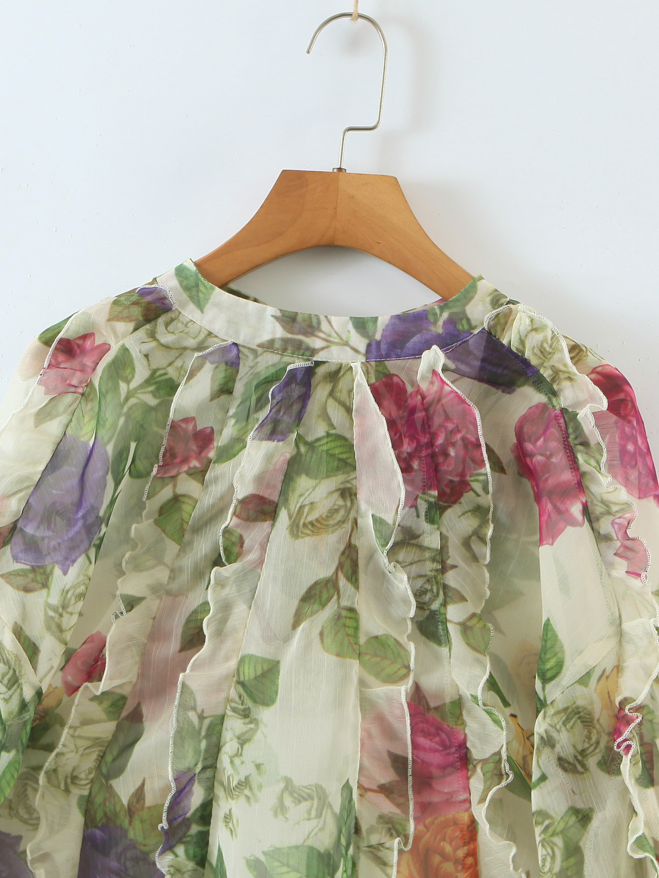 ruffle long-sleeved hollow lace-up flower print top NSXFL117725